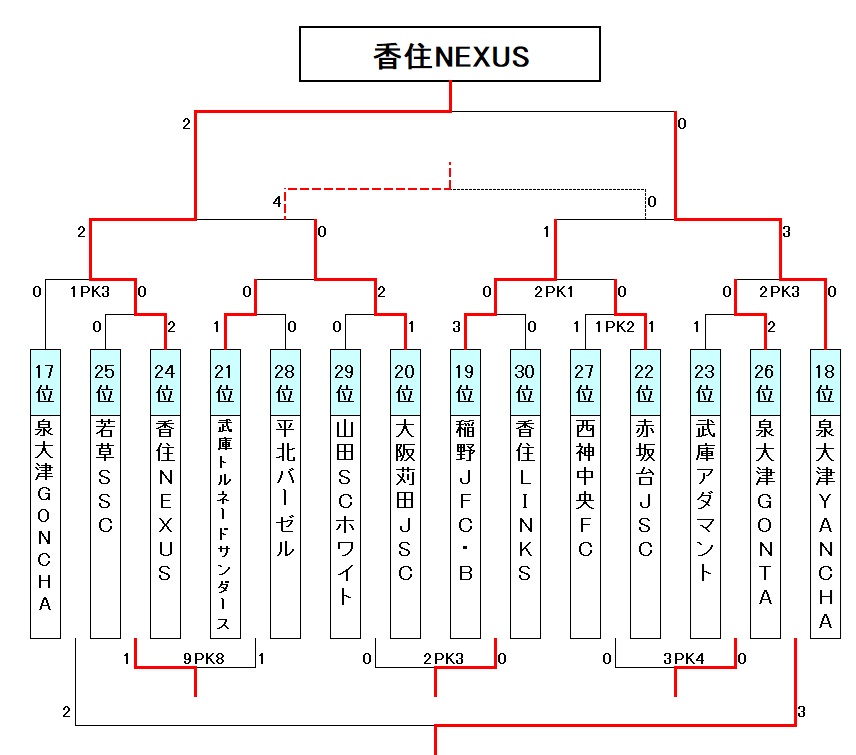 | 武庫JSC・ハリケーンズ | ○ 5-3 × | 梶FC |