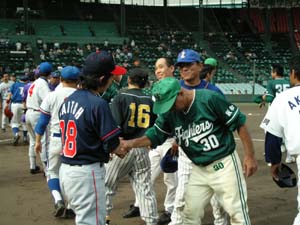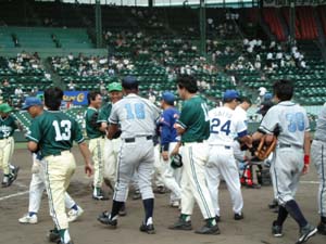 選手同士で握手を交わします。 |