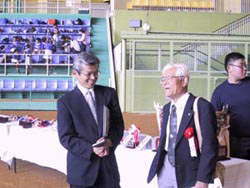 | 翼イレブンサッカークラブ | 左 神鍋観光協会事務局長赤江氏 右 元松原市サッカー協会会長山田氏 (長居競技場を設計された芝博士) |