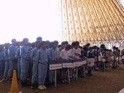 | 全60チームが但馬ドームに 集まり開会式 9:10頃 |